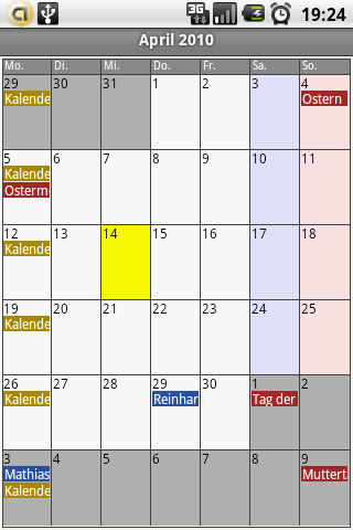Features:Month, Week and Day views.Today, Month, Week and Day widgets.(Pro only) Color customization.(Pro only) Calendar settings.