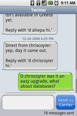 Besides that, you can do all the other tasks as the default Messaging app: select ringtones (if you have Rings Extended installed, you can choose MP3 Ringtones, even those created with Ringdroid), set Notification vibration (Update: chompSMS notification does NOT alert you 100% of the time in the notification bar and light… you often have to open the app to notice you’ve received new SMS texts), font sizes, even Touchscreen Click Sound and Touchscreen Vibrate while tying.ChompSMS v4.5 Android SmS mobile Application