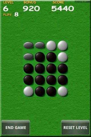 Flipit android mobile game,This is a challenging mind game. The purpose of this game is to flip all the pieces turn white.The difficult part is that when you flip a piece, it will flip it's adjacent pieces too.Complete 30 levels to win the game!
