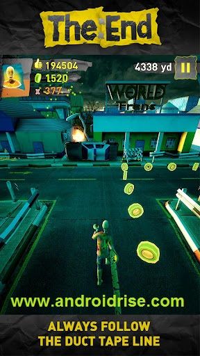 The End App challenges your reflexes and offers infinite game play with progressive level style and multiple environments. pass over the burned down motorcar and reach the hidden adhesive tape whereas running through the deserted town. you'll be target-hunting through twenty eight days with five challenges for every day. observe with free-runs for a challenge or purchase boosters to require the sting off, but never, ever take your eyes off the duct tape! Collect them!
